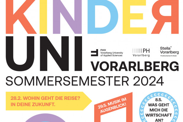Am 28.02.2024 startet die Kinderuni Vorarlberg ins Sommersemester mit Workshops zum Mit-Machen und Mit-Denken für Kinder im Alter von 8 bis 12 Jahren. Angebot für Schulen: Auch ganze Klassen können an diesem Bildungsangebot teilnehmen (Anmeldung unter ).