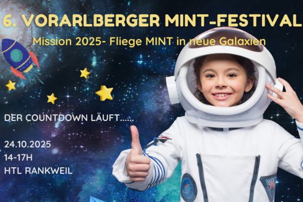 Die MINT-Koordinationsstelle für Vorarlberg lädt Schüler/innen jedes Alters zum MINT-Festival 2025 am 24.10.2025 an der HTL Rankweil ein.Für Schulklassen, die das Festival besuchen wollen, gibt es ein Gratis-Ticket für den Verkehrsverbund. Mehr dazu
